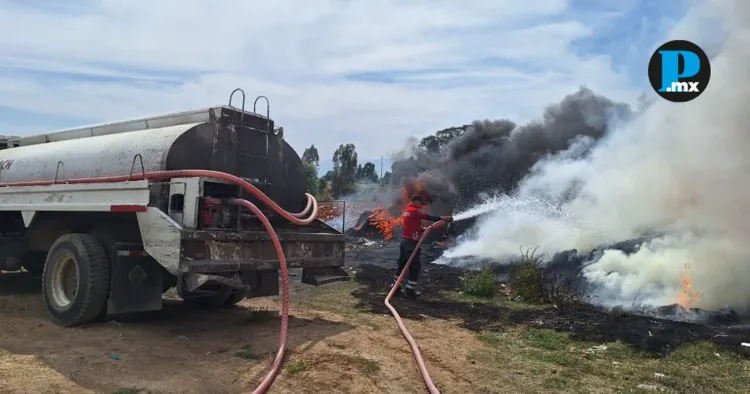 Elementos de Protección Civil de San Pedro Cholula atendieron de manera inmediata un reporte de incendio en un lote baldío ubicado en la junta auxiliar de San Juan Tlautla. Al llegar al sitio, se confirmó la quema de aproximadamente 200 llantas usadas, por lo que se implementaron maniobras para controlar el siniestro. Te puede interesar: Bomberos controlan incendio en recicladora de Coronango En las labores participaron personal de SOSAPACH y bomberos de Cuautlancingo, Juan C. Bonilla y Huejotzingo, quienes trabajaron de forma coordinada para sofocar el fuego. El incendio quedó controlado y no representó riesgo de propagación hacia construcciones aledañas. Actualmente, los elementos continúan en la zona con tareas de enfriamiento y remoción de brasas para evitar una posible reactivación.
