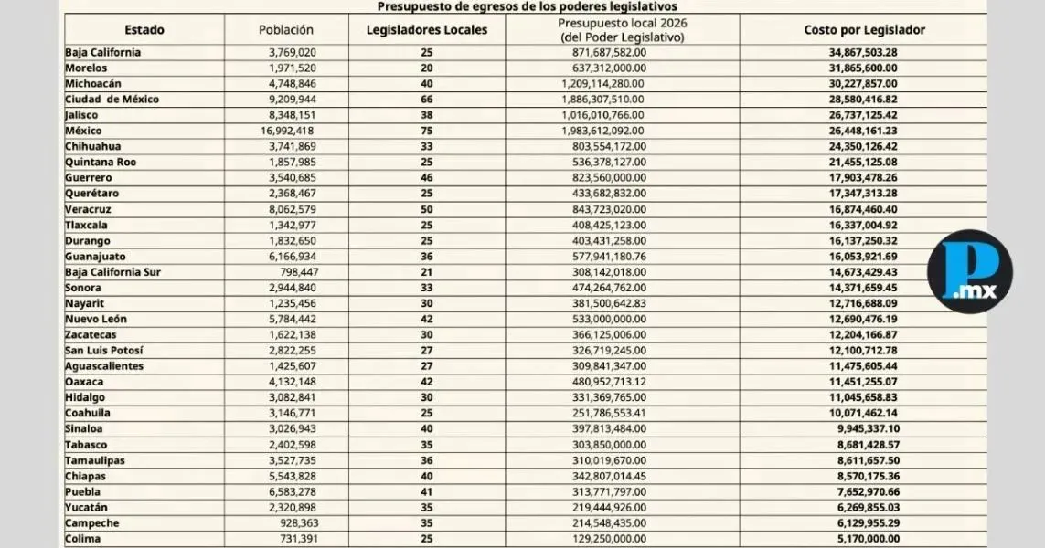 Durante su conferencia matutina, la presidenta Claudia Sheinbaum Pardo señaló que los congresos locales en México mantienen costos elevados y esquemas de gasto que serán revisados dentro de la reforma electoral propuesta por su administración, entre ellos el Congreso del Estado de Tlaxcala, que se ubica entre los 12 más costosos del país. De acuerdo con el Presupuesto de Egresos 2026, el Poder Legislativo estatal ejercerá 408 millones 425 mil 123 pesos, pese a contar con solo 25 diputadas y diputados, uno de los números más reducidos entre las legislaturas estatales. Al dividir el presupuesto total entre los integrantes de la LXV Legislatura, el costo promedio por legislador supera los 16 millones 337 mil pesos al año, monto que incluye salarios, apoyos legislativos, gastos operativos y otras partidas administrativas.