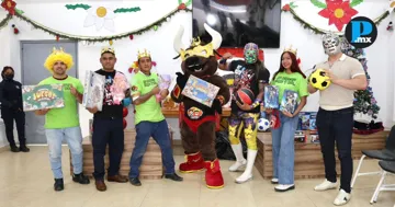Rey Apocalipsis, Xelhua y Arkalis, superestrellas del cuadrilátero mexicano, fueron recibidos con júbilo por las pequeñas y pequeños